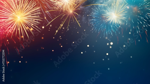 Fototapeta premium Beautiful fireworks background at night for holiday decoration