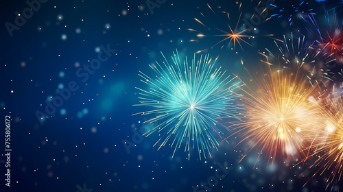 Naklejka premium Beautiful fireworks background at night for holiday decoration