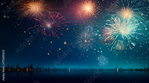 Naklejka premium Beautiful fireworks background at night for holiday decoration
