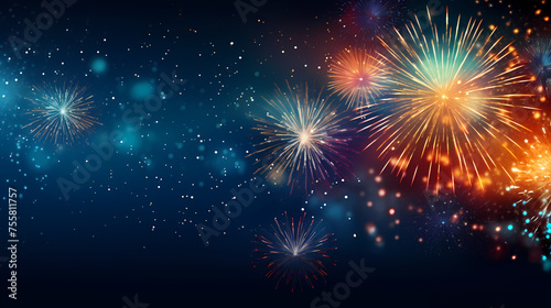 Naklejka premium Beautiful fireworks background at night for holiday decoration