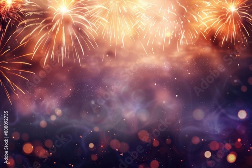 Fototapeta premium Beautiful fireworks display with colorful lights and bokeh effect, perfect...