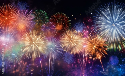 © Rasindu, Naklejka premium Beautiful fireworks show over blue background to celebrate Chinese lunar new year. Abstract background.