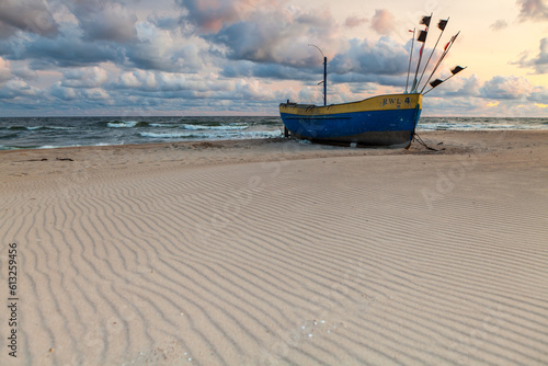 Fototapeta premium Beautiful fishing boat on the beach in Rewal.
