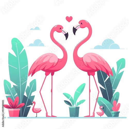© Md Hasan, Fototapeta premium Beautiful flamingo bird illustration isolated on a white background Minimalist