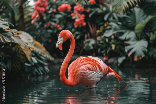 © kardaska, Fototapeta premium Beautiful flamingo walking in the water.