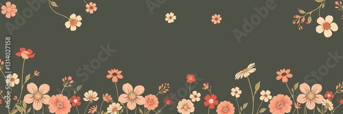 Obraz premium Beautiful floral background featuring various blooms and greenery creating a vibrant natural scene