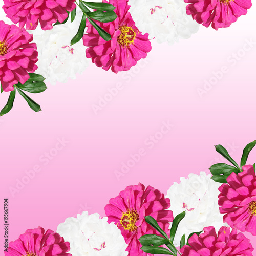 Fototapeta premium Beautiful floral background of pions and tsiny