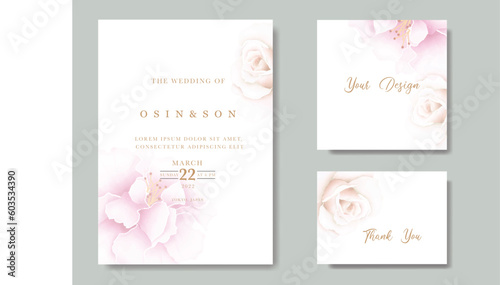 Fototapeta premium Beautiful Floral Leaves Watercolor Wedding Invitation Card