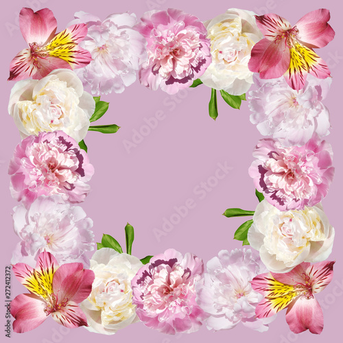 © Ann-Mary, Obraz premium Beautiful floral pattern of alstroemeria and peonies. Isolated