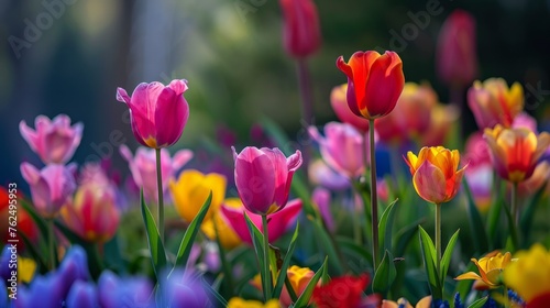 © SAHURI, Obraz premium beautiful flower garden, calm peaceful cheerful atmosphere springtime background