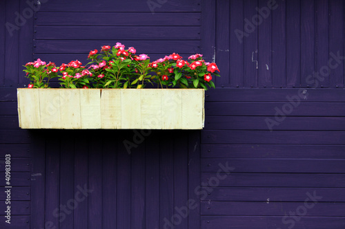 © wolfmaster13, Naklejka premium Beautiful flower on blue wall background