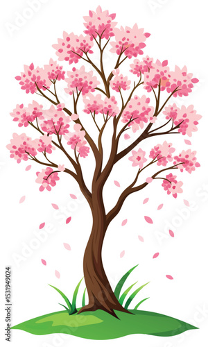 Fototapeta premium Beautiful Flowering Cherry Blossom Tree Vector.