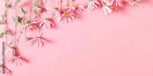 Naklejka premium Beautiful flowers composition. Pink flowers on pastel pink background....