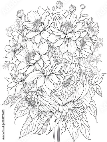 © Jimelyo, Fototapeta premium beautiful flowers for coloring