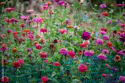 Fototapeta premium Beautiful flowers magenta pink orange green fall autumn October garden