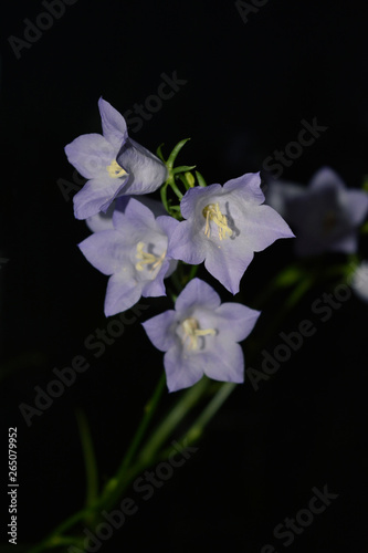 Obraz premium Beautiful flowers of the peach-leaved bellflower on dark background. Blooming...