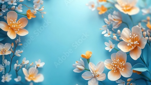 Naklejka premium Beautiful Flowers on a Soft Blue Background Creating a Serene and Tranquil Atmosphere in a Vibrant Floral Design