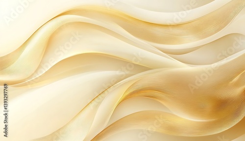 Fototapeta premium Beautiful Flowing Cream and Gold Fabric with Delicate Stripes Illustrating...