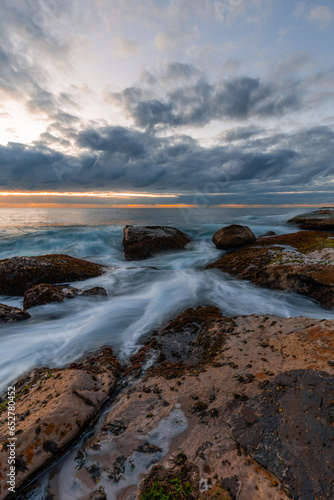 Obraz premium Beautiful flowing water between rocky shore.