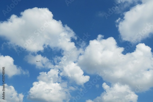 Fototapeta premium Beautiful fluffy clouds in blue sky, natural background