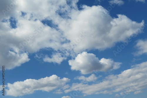 Fototapeta premium Beautiful fluffy clouds view in blue sky, natural background