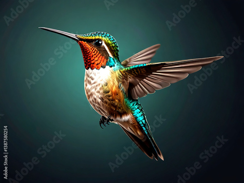 © Jhorna, Fototapeta premium Beautiful flying hummingbird. Design element. For banners, posters, leaflets and brochure