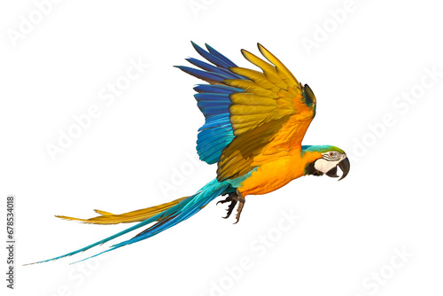 © Passakorn, Fototapeta premium Beautiful flying parrot isolated on transparent background png file