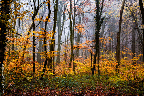 Fototapeta premium beautiful foggy forest in autumn