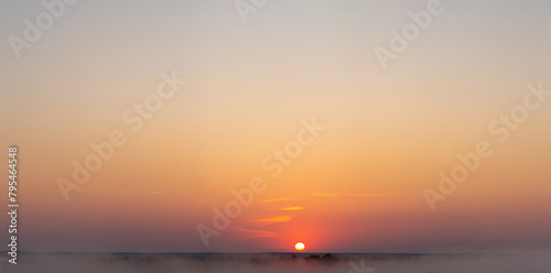 © anderus, Fototapeta premium Beautiful foggy morning, mystical and mesmerizing landscape