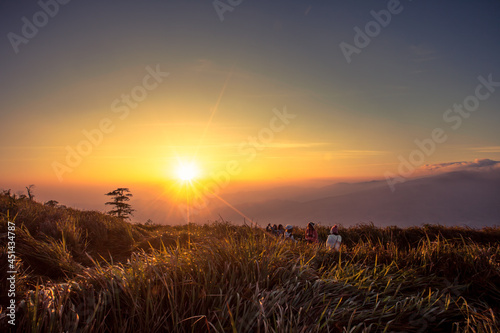 © MedeeCafe, Obraz premium Beautiful foggy sunrise landscape.