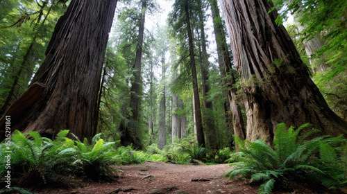 Fototapeta premium Beautiful forest background for screensaver. with sunbeams. Calm close-up of fairytale forest and nature landscape, panorama. Summer vacation, holiday, amazing nature.