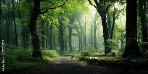 © David Kreuzberg, Obraz premium beautiful forest background wallpaper