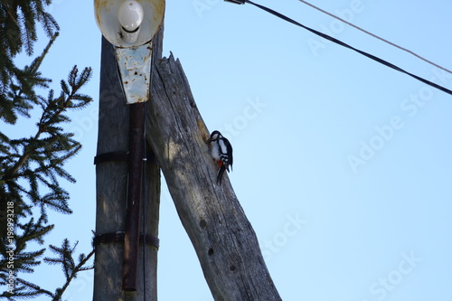 Fototapeta premium beautiful forest bird woodpecker on a light column