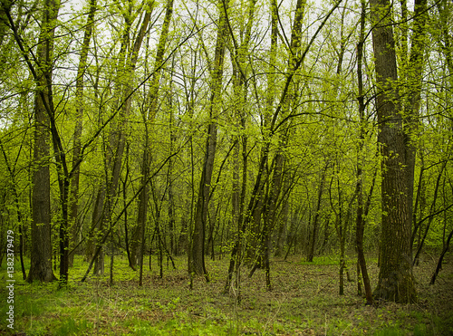 Obraz premium Beautiful forest landscape with green plants and tall trees