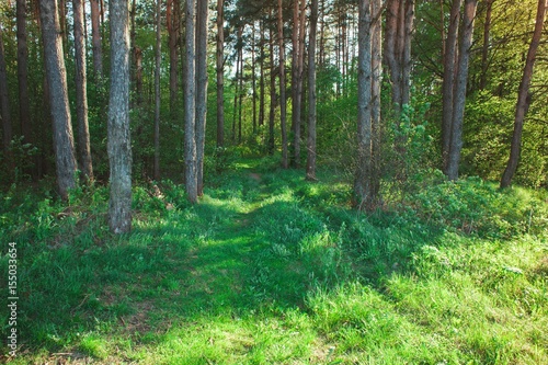Obraz premium Beautiful forest path through the trees. Landscape in summer