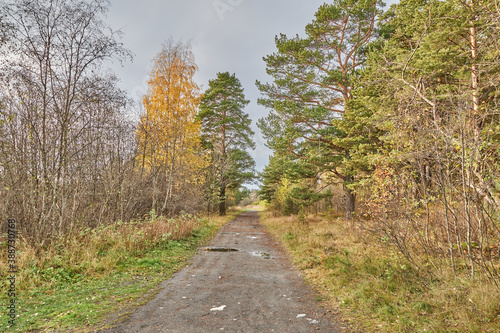 © enskanto, Naklejka premium beautiful forest road in autumn