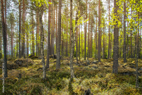 © Joose, Obraz premium beautiful forest scenery with sunshine.