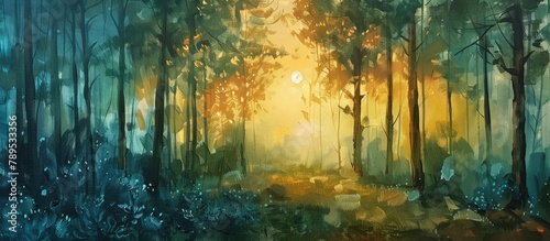 © Lasvu, Obraz premium Beautiful forest view at sunrise