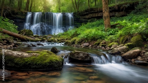 © YogzRinanda, Fototapeta premium Beautiful forest waterfall