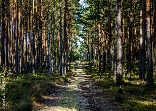 © Frąckowiak, Fototapeta premium Beautiful forest with road between trees