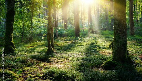 Obraz premium beautiful forest with sunlight and fairy tale mood