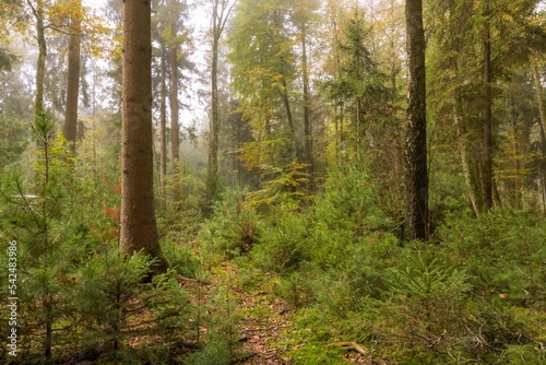 Obraz premium Beautiful forest with trees in Switzerland in the fall on a sunny day