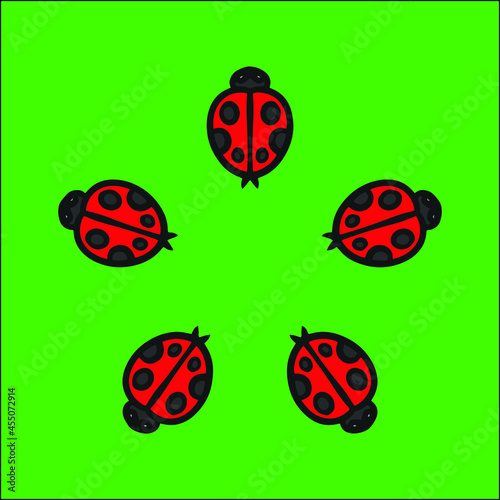 © Artdjodimulyo, Fototapeta premium Beautiful formation of 5 ladybugs.