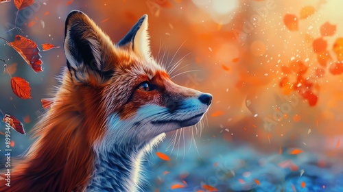 © Erik, Obraz premium Beautiful fox in nature. Selective focus.