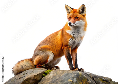 © Shakib, Obraz premium beautiful fox on rock isolated on white background, PNG