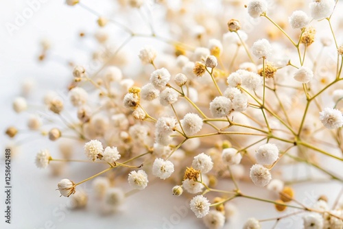 © Anastasiia Kasina, Fototapeta premium Beautiful fragile gypsophila dried flowers with white background macro