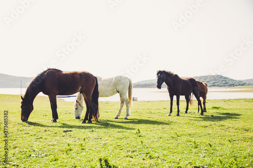 © Dellealpi, Obraz premium Beautiful Free Horses in the meadows