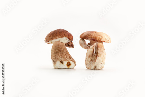 Fototapeta premium Beautiful fresh porcini mushrooms on white background isolated season healthy food