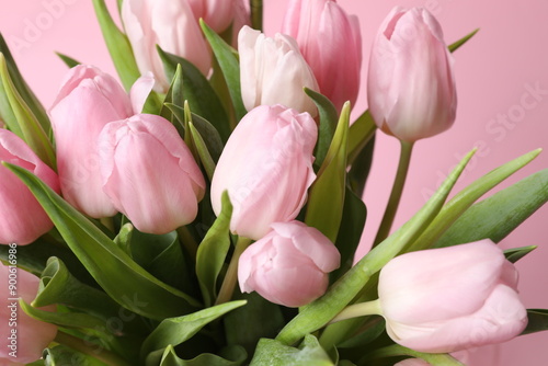Fototapeta premium Beautiful fresh tulips on color background