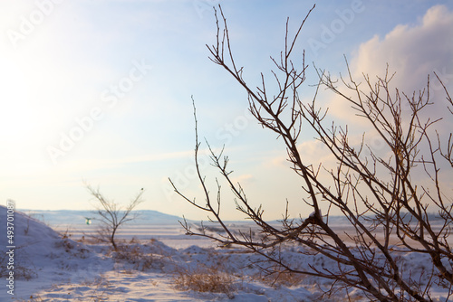 Fototapeta premium beautiful frosty tree in winter